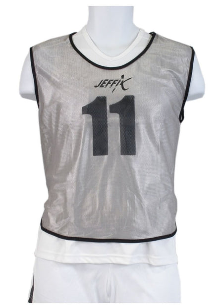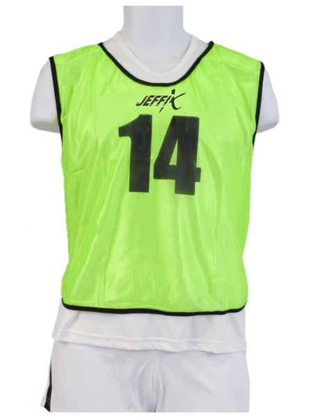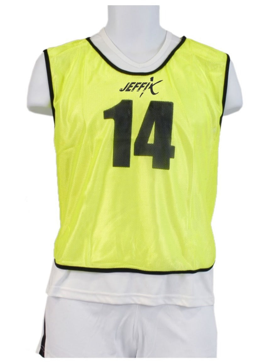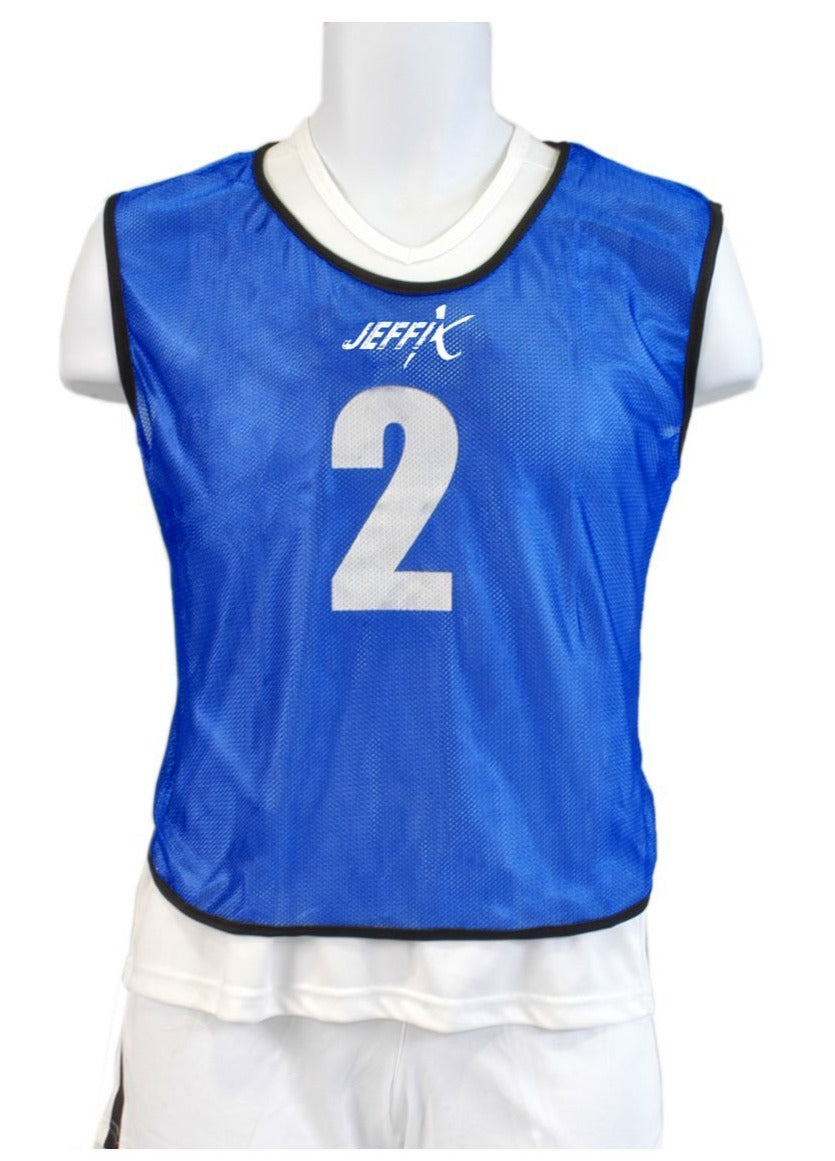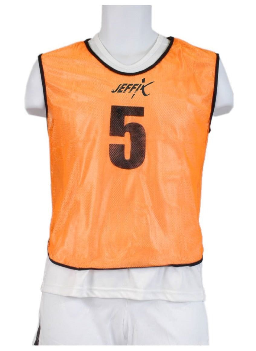 Choix de couleur et de trois grandeurs. Les dossards sont numérotés de 1 à 15. Les numéros sont d'un seul côté.
