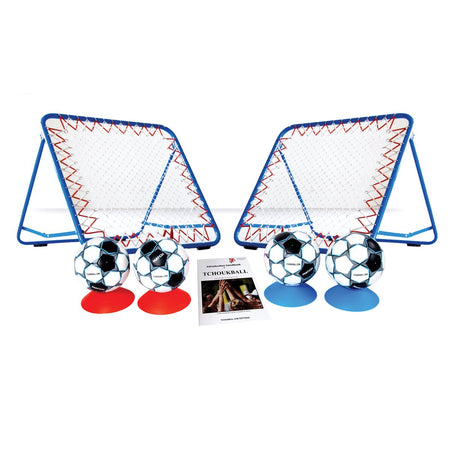 Ensemble de Tchoukball comprenant 2 buts en acier peint au jet de sable bleu, cordes et ressorts de première qualité, muni d'embout en caoutchouc pour protéger les planchers. 4 ballons et un manuel d'instruction et règlements. Répond au norme de la fédération.