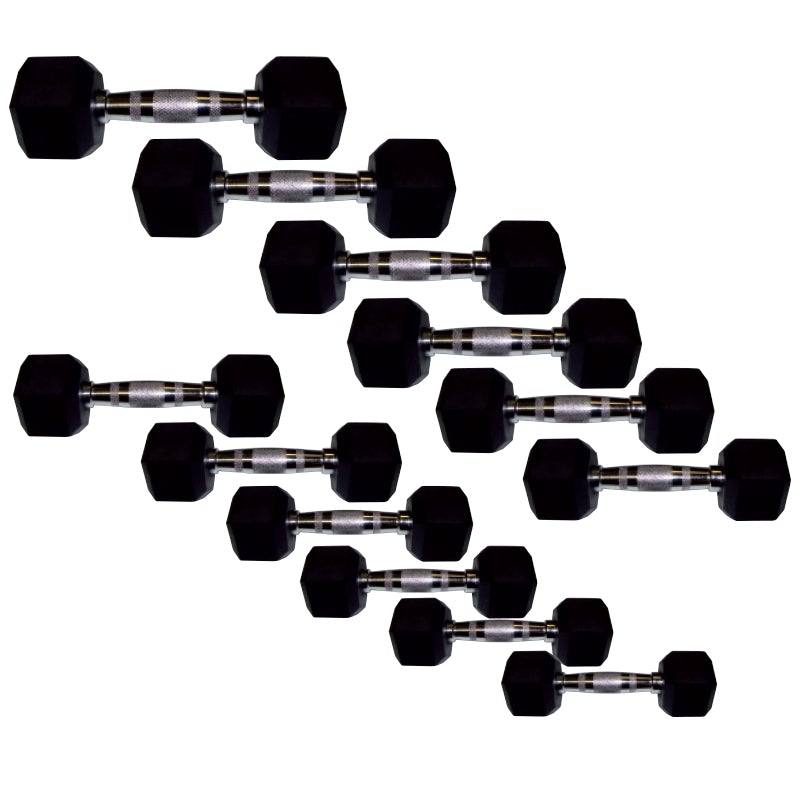 L'ensemble d'Haltères hexagonaux en caoutchouc est parfait pour tous les styles d'entraînements et conviendra à toute la famille. Facilement manipulable car ils sont courts avec une bonne prise comme en centre d'entraînement. Les embouts de caoutchouc évite les bris au plancher et prévient les blessures.