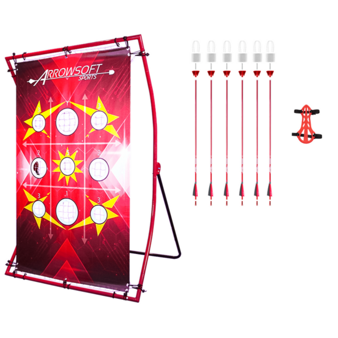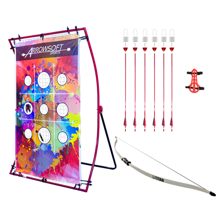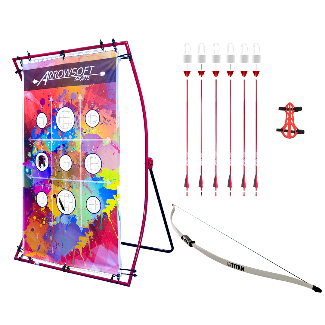 L'ensemble pour le tir à l'arc avec toile, arc et flèches pour débutants est un bon départ pour débuter le tir à l'arc. C'est parfait pour les enfants de 9 ans et plus puisque le poids des flèches à tirer est bas (10-20lbs). Aussi, les dimensions de l'arc sont adaptés pour la facilité d'utilisation en vue d'être utilisé par des débutants. Vient avec des flèches sécuritaires à bout en mousse, protecteur au bras et la toile.