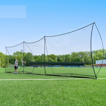 Filet d'arrêt balle Proflex pour baseball, football, soccer ou golf. Le système de filet arrêt balle multifonction de 10 pieds de haut présente une conception pionnière, fonctionnant comme un arrêt de balle et un filet de frappe. La structure réglable de ce filet à balles peut être positionnée à n'importe quel angle, elle est donc adaptée à votre configuration. Idéal pour les jardins, les écoles et les terrains d'entraînement. Poids de base en option disponibles. Le système de base est de 10' de haut x 11' de large. Des extensions de 19' peuvent être ajoutées en option