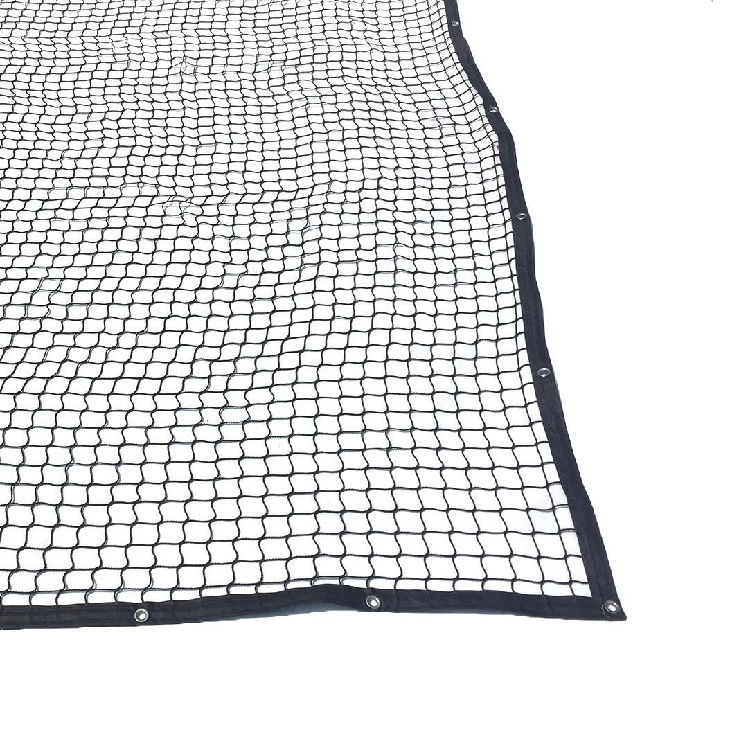 Filet de protection par velcro pré-coupé : tailles standards de 10' x 10' ou 10' x 15' offert en couleur noir ou vert (selon le sports). Les mailles du filet de protection est offert dans le 1-3/4 ou 7/8 pouces sans nœud et traité contre les intempéries.