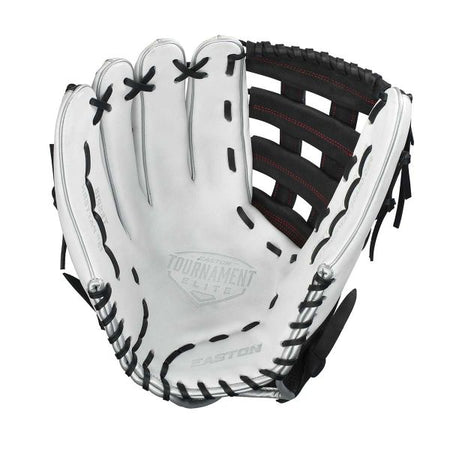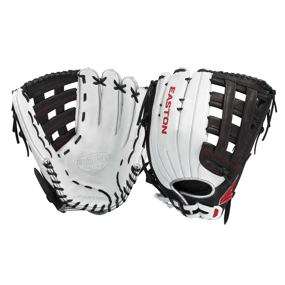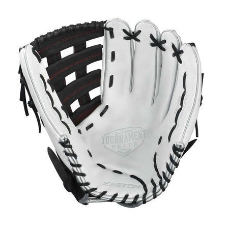 Gant Easton Slowpitch 15" Tournament Elite. Le gant de softball Easton TESP15 15" Tournament Elite Dual Bar H-Web est parfait pour jouer sur le terrain dans un jeu de softball à balle lente. Les motifs spécifiques au softball du gant sont conçus pour créer un talon plus large et plus de profondeur de poche. Ce modèle Easton est également doté de cuir Diamond Pro Steer™ USA et d'une doublure de paume en cuir de vache incroyablement lisse pour un confort et une durabilité améliorés.