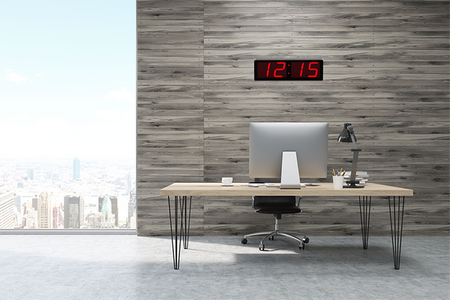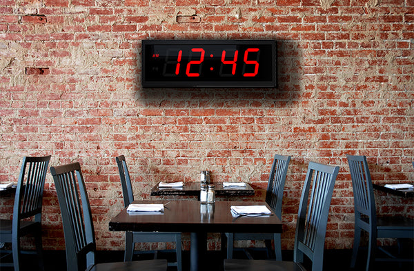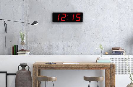 Horloge Chronomètre Numérique. Chiffres de 5″ dans une LED rouge vif, faciles à lire jusqu'à 150 pieds. Écran acrylique incassable, verre non dangereux. Télécommande incluse