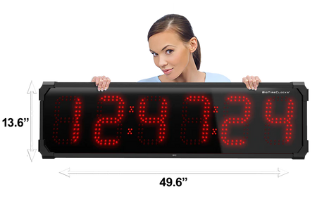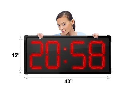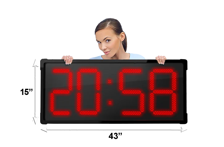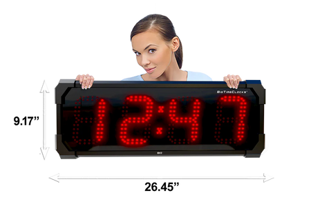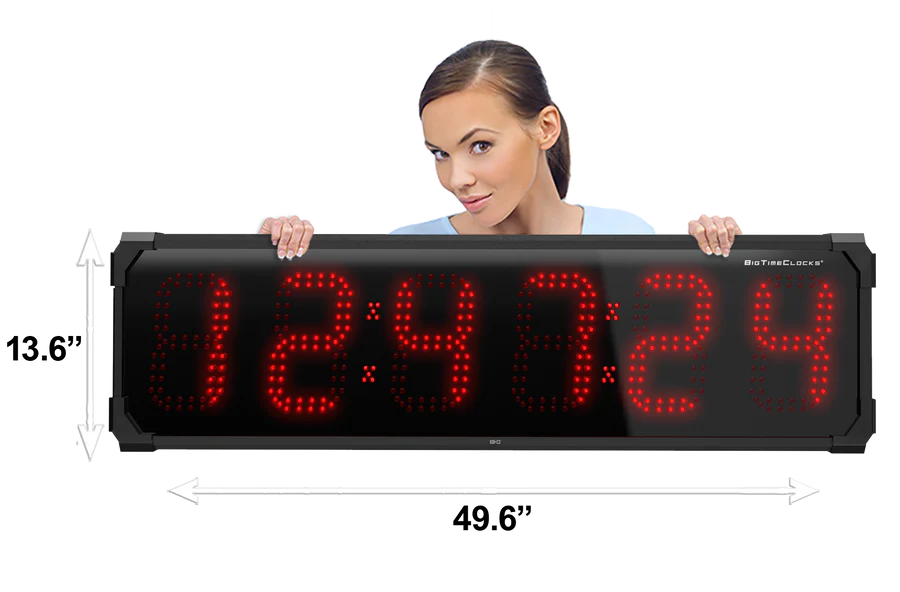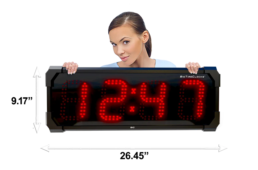 Horloge murale numérique LED à l'épreuve de l'eau grand format de BigTimeClocks offre une visibilité exceptionnelle grâce à ses chiffres numériques LED. Conçue pour être installée dans des espaces publics, bureaux, entrepôts ou salles de sports, cette horloge combine design minimaliste et performance. Elle est prête à l’emploi, facile à installer et supporte un fonctionnement continu avec une grande lisibilité de loin.