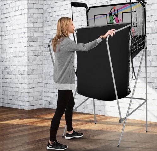 Parfait pour le sous sol ce jeux vous offrent un choix de 8 différentes options et jusqu'à 4 joueurs. Contiens 2 cerceaux et 4 ballons de caoutchouc. Se replie pour sauver de l'espace lorsqu'il n'est pas utiliser. Compte les points électroniquement et produit des sons d'arcades excitants.