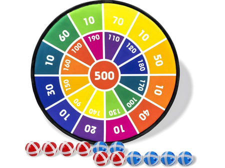 Jeu de dart à balles avec cible de 13,6 pouces de diamètre composé d'un tissu doux de haute qualité, durable. Forte adhérence pour tenir les balles, mais sans blesser les mains de vos enfants. Le jeu contient 12 balles collantes, dont 6 balles sont bleues et les 6 autres rouges.