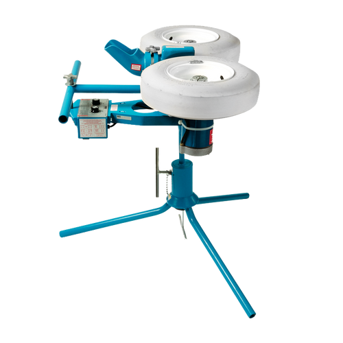 Lance balles 2 en 1 de Jugs à deux roues de Jugs. La machine Combo vous permet de lancer des balles de baseball ou de softball. 2 machines en 1, parfaite pour les entraîneurs jonglant avec un budget serré. Livré avec deux ensemble de pattes pour ajuster la hauteur.