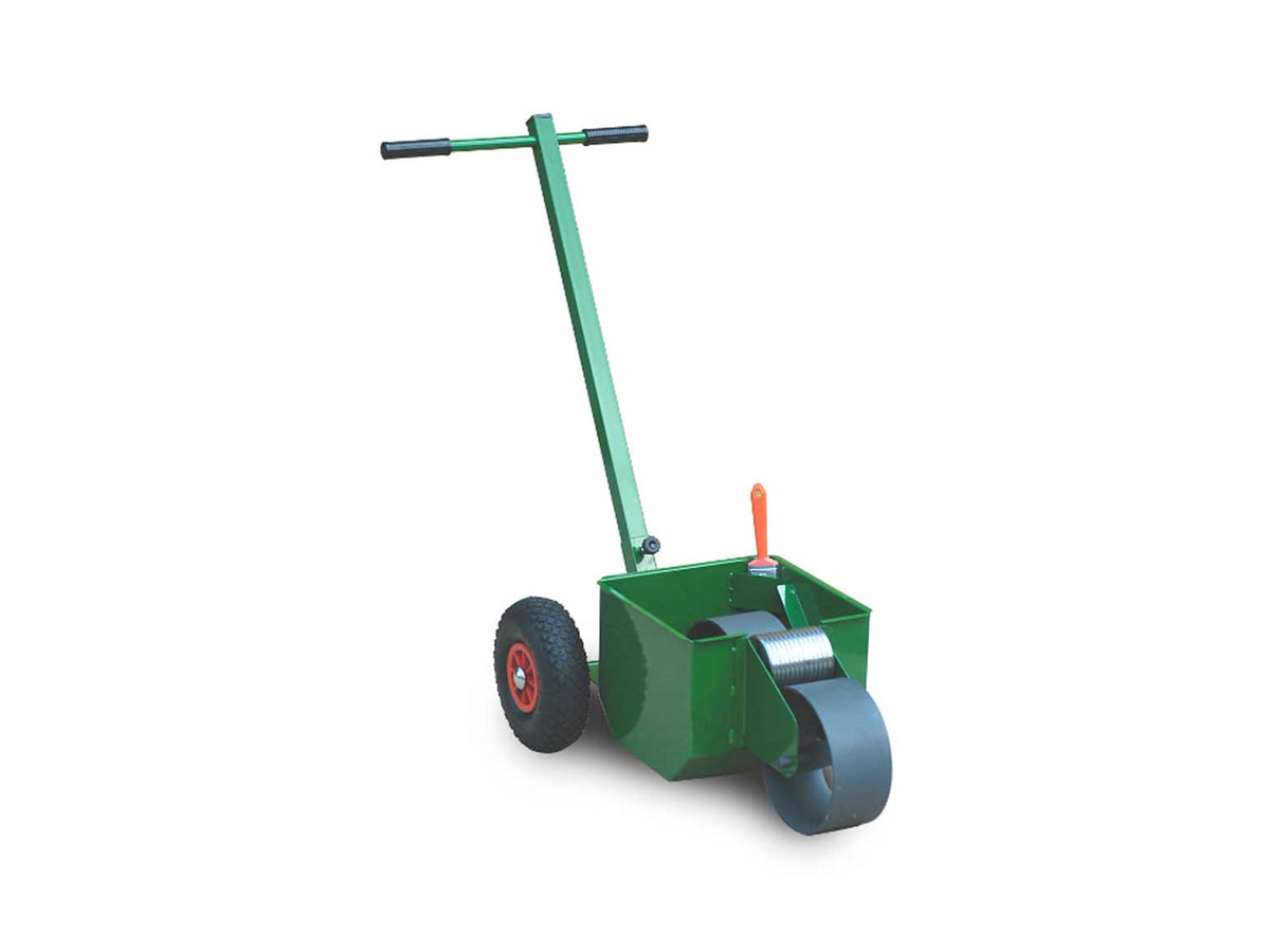 Machine à tracer les lignes sur gazon. Fabriqué en acier robuste et peint vert. Pneumatique de caoutchouc pour roulement optimal. Manche à poignées décalé pour éviter de marcher sur les lignes fraîches. Rouleau central de 10cm pour répartir la peinture parfaitement. Réservoir pour contenant de 12 litres. Le réservoir s'incline pour éviter les pertes de peinture.