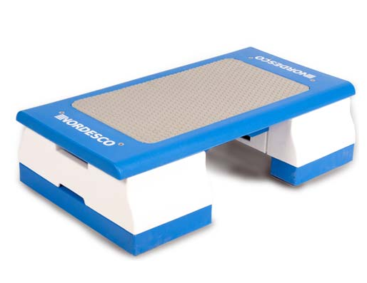 La marche pour exercices est très stable et est utilisé dans l'eau ou hors de l'eau lors des cours d'aquaforme. Il comporte une surface antidérapante fait d'un plastique dense. La hauteur est ajustable a 5.5 pouces ou 7.5 pouces. Il pèse approximativement 30lb.