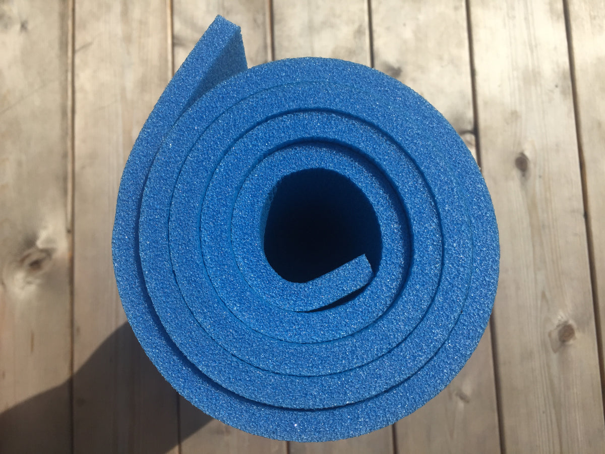 Ce matelas de mousse polyéthylène semi-ferme bleu est idéal pour l'entrainement à l'extérieur comme à l'intérieur. Il a une épaisseur de 3/4" et résistant contre la pluie et les éléments extérieurs. Hyper léger à transporter partout où vous le voulez! La grandeur du matelas est de 20" x 56", facile à rouler et inclut l'attache noir pour transporter le matelas.