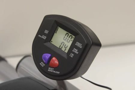- Moniteur ACL intégré affichant la vitesse/tours par minute, le temps, la distance et les calories brûlées.