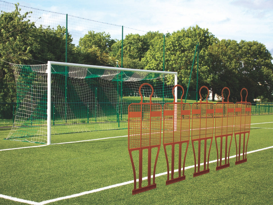 Mur de coup franc Mur flexible fabriqué en plastique souple. Peut être utilisé comme mur de coup-franc ou pour le slalom. Viens en groupe de 5 mannequins. Parfait pour l'entraînement, ils peuvent être utilisés comme mur de coup-franc ou pour le slalom afin de travailler les dribbles. Accessoire d'entraînement pour terrain en herbe. Pour les terrains synthétiques avec chariot mobile en option