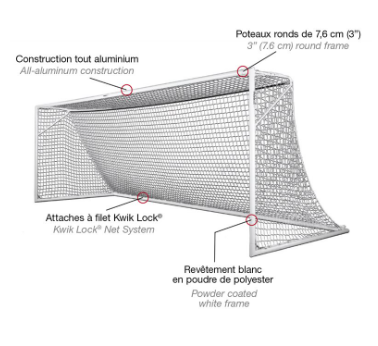 Spécifications des paires de buts de soccer senior Kwik Goal