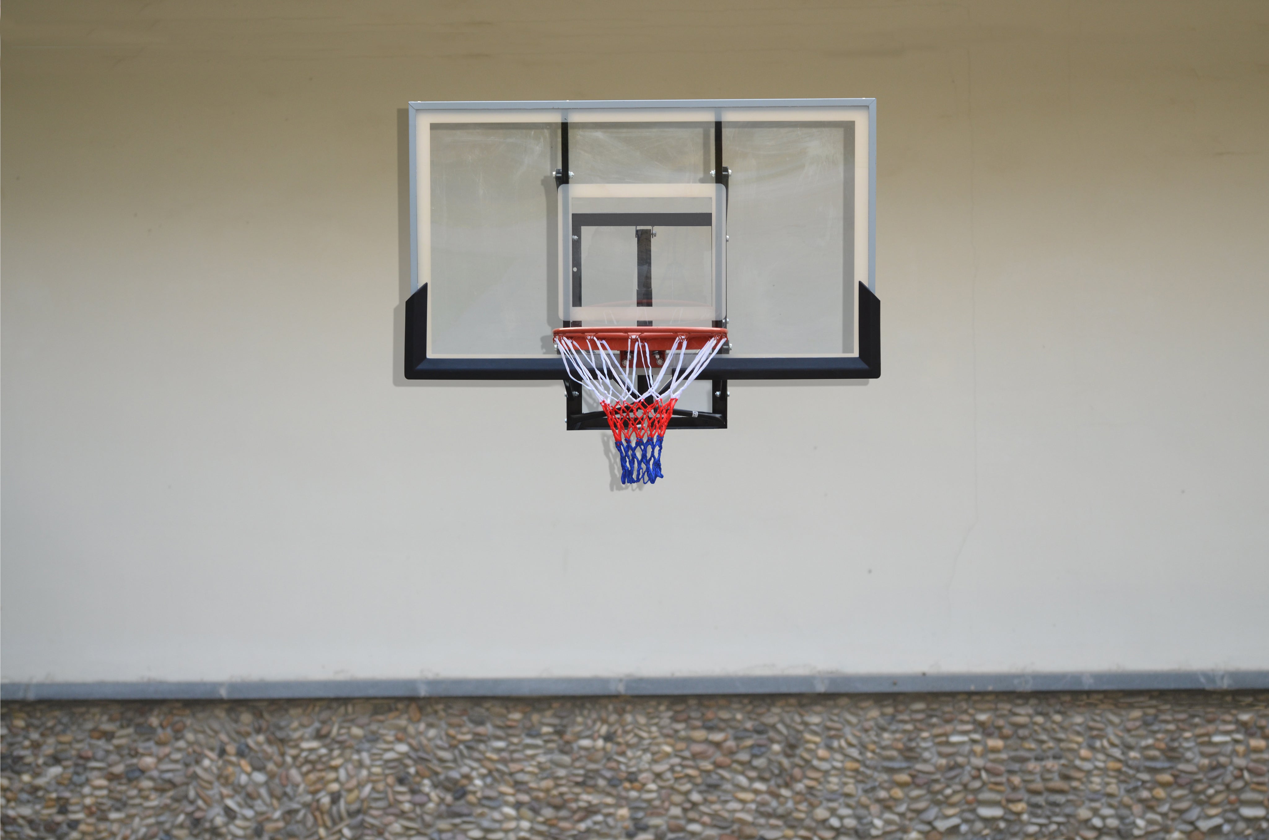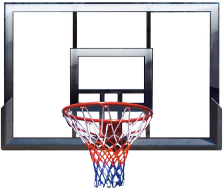 Panneau de 120cm x 80cm en polycarbonate transparent. Structure en acier fixe. Cadre noir avec protecteur au bas du panneau. Anneau simple et filet inclus. Nouveau design attrayant. S'installe facilement au clôture, mur, garage etc.