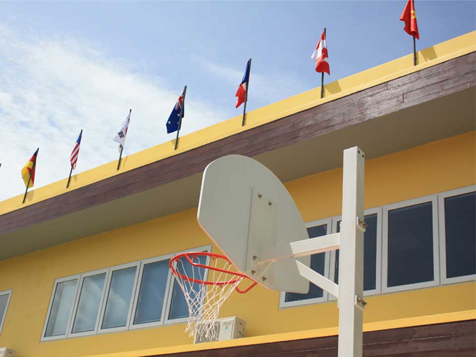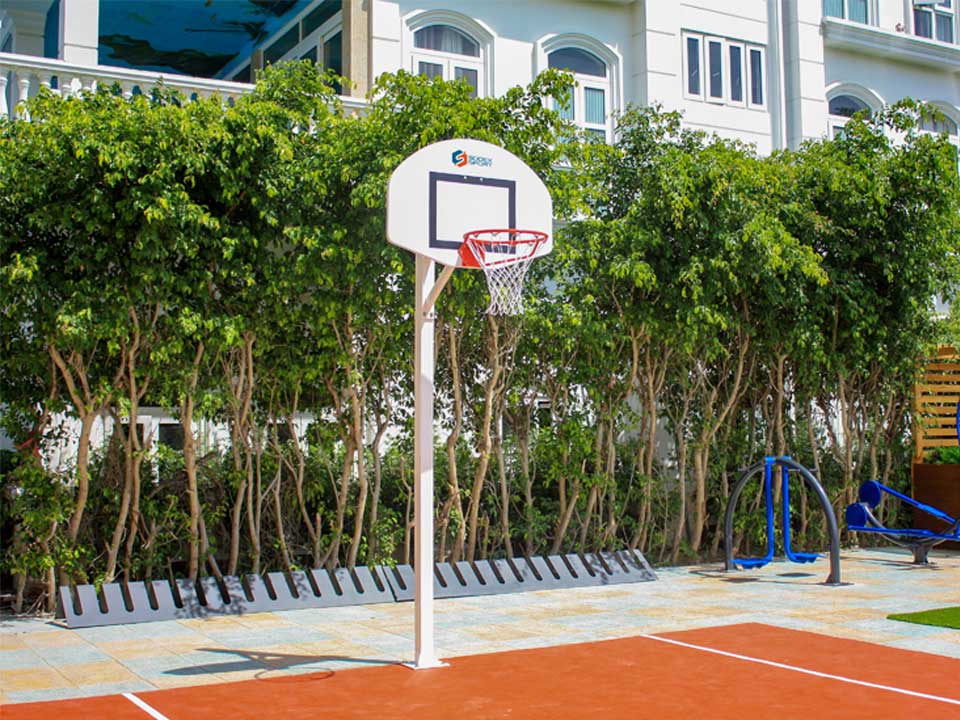 Hauteur du rim : 2.60m ou 3.05m (à définir lors de l'installation). Déport : 0.60m.