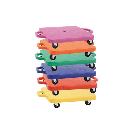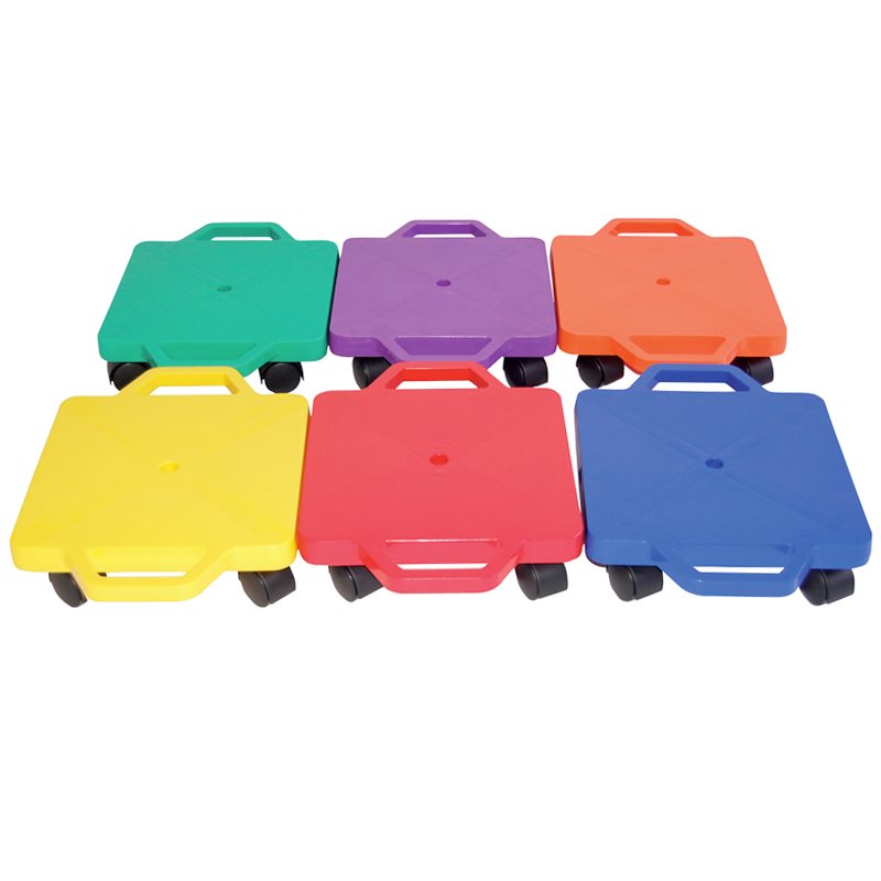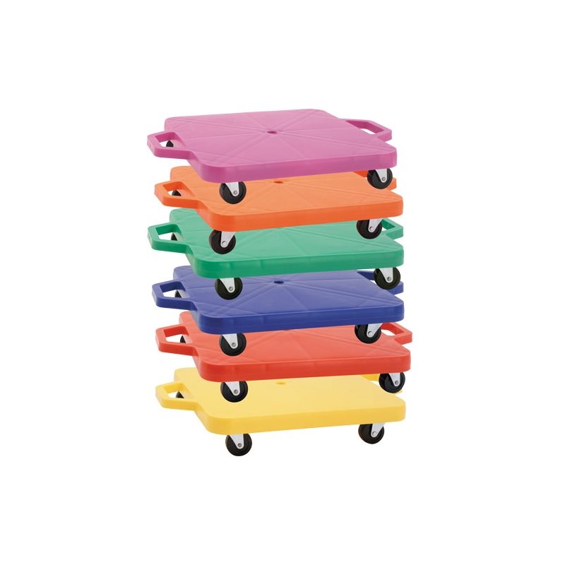 Planche à roulette de gymnase avec poignées. Muni de roues en plastique pivotantes de 5 cm (2") qui ne marquent pas les planchers. Choix de deux grandeurs. Roulette de 3,8cm qui ne marquent pas les planchers.