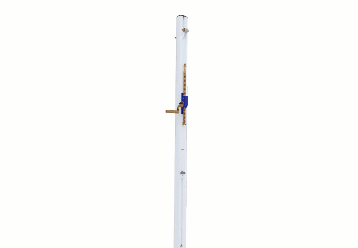 Poteau extérieur central ajustable multi sports. Poteaux central à sceller en aluminium de 90mm de diamètre. Tension manuelle par treuil. Conforme NF EN1271 Classe C. Hauteur ajustable : pour le Tennis - Pickleball -Badminton - Volleyball. Système de tension rapide et resistant
