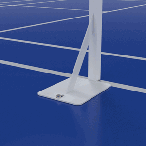 Facile à transporter et facteur de forme très compact pour le stockage. Hauteur réglable 1,55m/1,40m avec vis de serrage. Tension facile du filet grâce à la sangle et au taquet coinceur. Inclinaison du poteau pour compenser la tension. Protection en caoutchouc pour éviter de marquer le sol