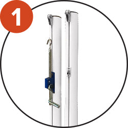 Poteaux de tennis à treuil externe. Livrés avec leurs barres de cadrage pour fixation du filet (barres verticales sur la hauteur du poteau). Conforme aux normes européennes NF EN1510. Treuil et manivelle inclus. Poteaux de tennis en aluminium pour une plus grande légèreté et une meilleure durée de vie. À bétonner directement ou par ancrages (en option). Peinture fini vinyle blanc.