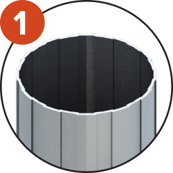 Ancrages en aluminium en option de 400mm de profondeur. Profil dentelé pour laisser passer les grains de sable et graviers, évitant tout blocage des poteaux