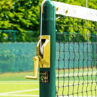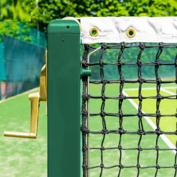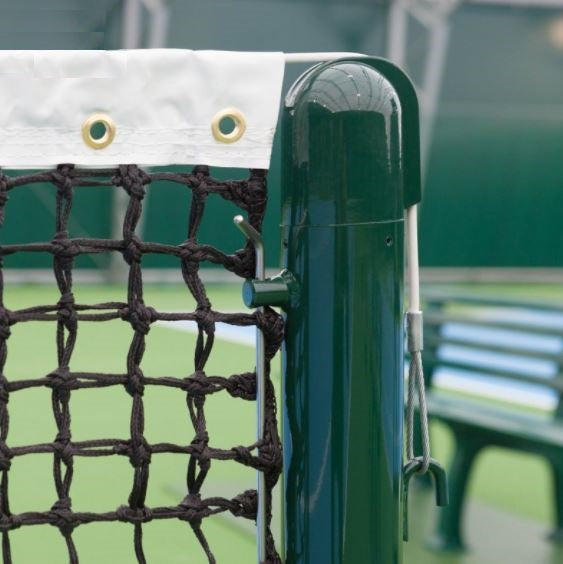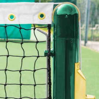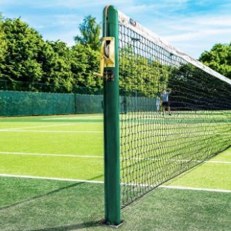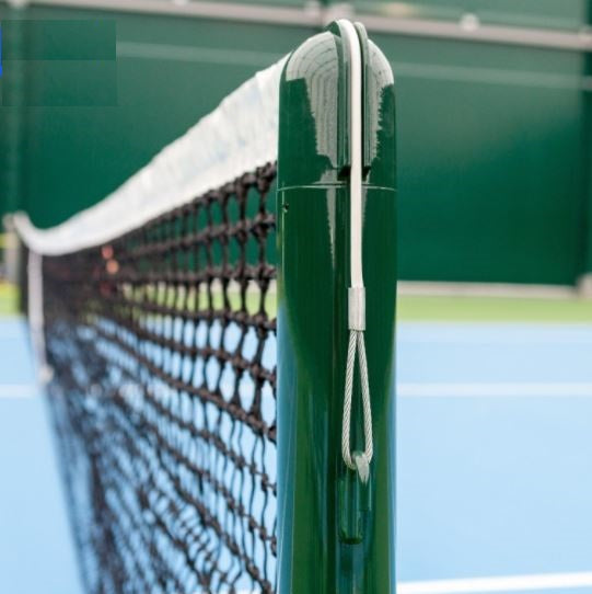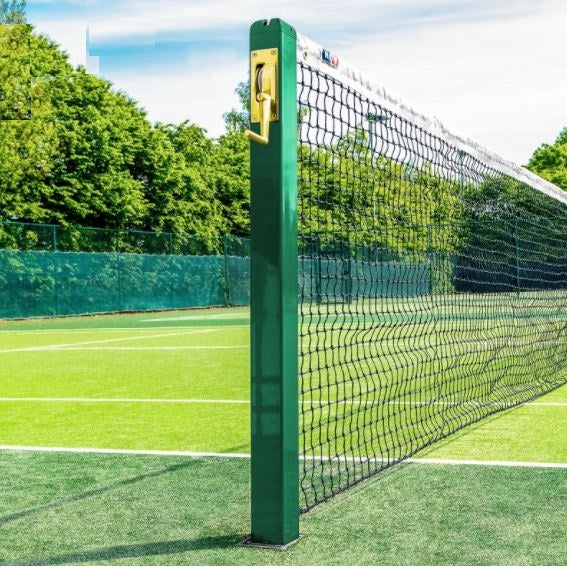 Poteaux de Tennis Vermont robustes rond ou carré en acier de 76 mm. Poteaux avec une finition laqué en poudre vert de type Wimbledon qui leur donne une excellente qualité de résistance aux égratignures et aux intempéries.