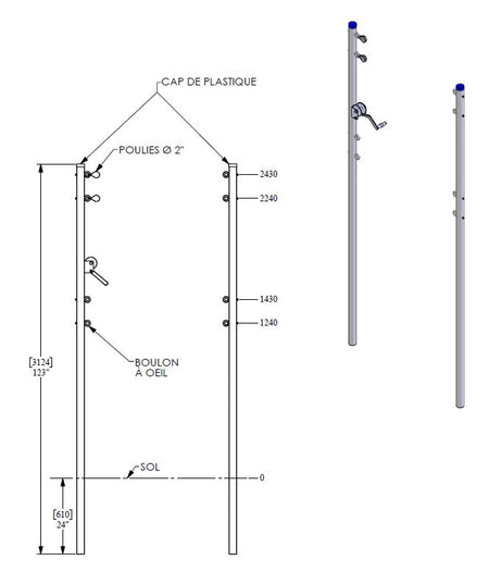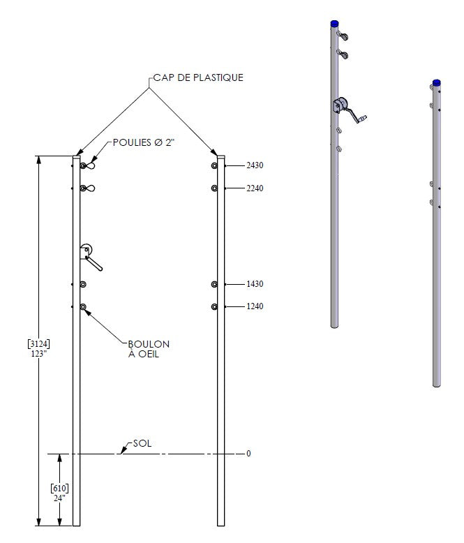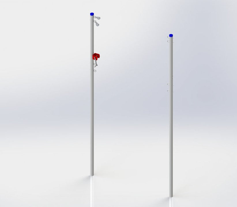 Poteaux de volleyball de plage. Fabriqué en acier galvanisé de 2 7/8" de diamètre. Système à deux poulies. Poteaux munis de couvercle en plastique robuste.