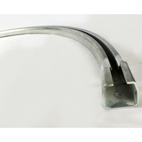 Rail de rideau courbé en acier galvanisé. De grade 16 industrielle. Choix de 2 angles 45 ou 90 degré. Longueur de 2' pieds. Supporte un poids de 100 lbs par pied linéaire. Maximum de 175 lbs en un point central. Se joint aux rails droit sans joint. Dimensions 1.48 in x 1.25 in.