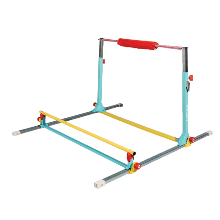 Rebondisseur simple EducGym permet et facilite le renforcement des appuis, de la planche à l’appui tendu renversé (ATR). Agrès d’entraînement réglable en longueur et en hauteur, adaptable au poids et à la taille du gymnaste par la variation et la puissance des sandows gainés. Permet le travail des 1/2 tours, tours complets, 1/2 valse, valse à l'ATR, lorsqu'il est utilisé en position double, peut être combiné aux mini-agrès.