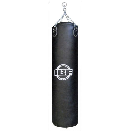 Sac d'entrainement de boxe lourd fait de vinyle PVC résistant de marque IBF. Muni de crochet en D soudé. Chaîne peint au jet. Rempli d'un mélange de fibre. Choix de de sac à 75 lbs et 100lbs
