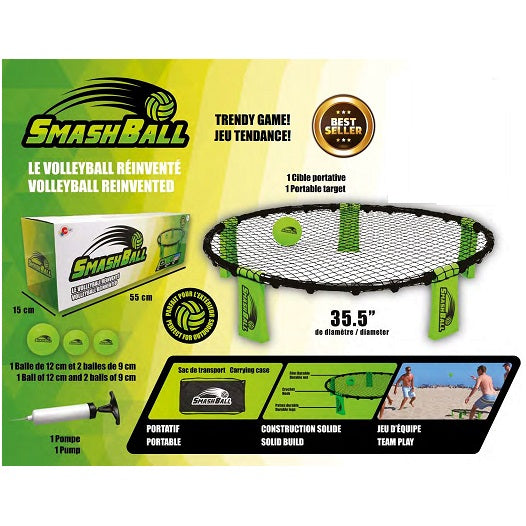 Jeu de Smashball similaire au populaire Spikeball parfait pour l'extérieur. Comprends la cible de 35.5cm, une pompe, une balle de 12cm et deux balles 9cm, un sac de transport. Pourquoi payer plus? Smashball distribuer par une compagnie québécoise.
