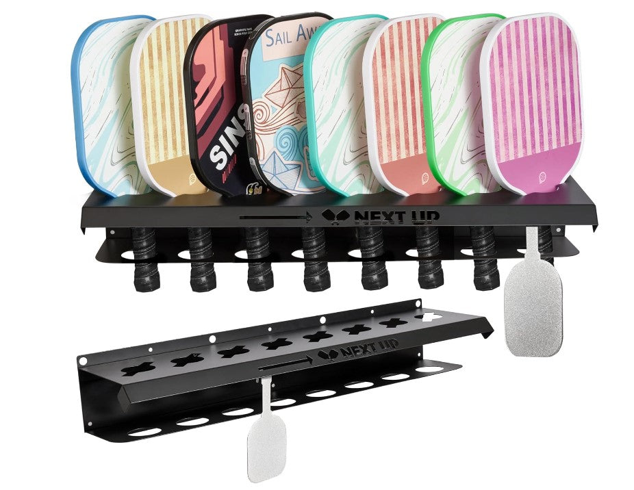 Support à raquettes de pickleball. Détermine les joueurs pour le prochain terrain ouvert. Déplacez l'étiquette adsorbée sur le support pour désigner les prochains joueurs à jouer. La conception de la position de la raquette inclinée à 60° vous permet de localiser facilement votre raquette.