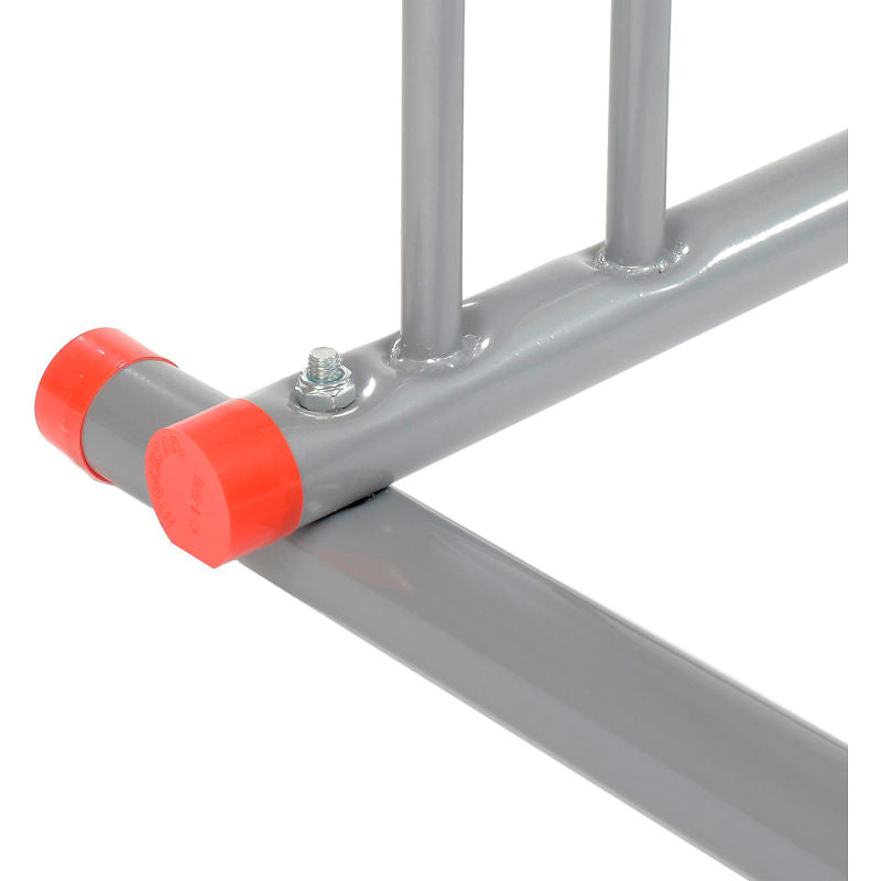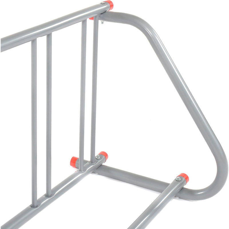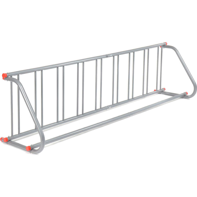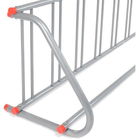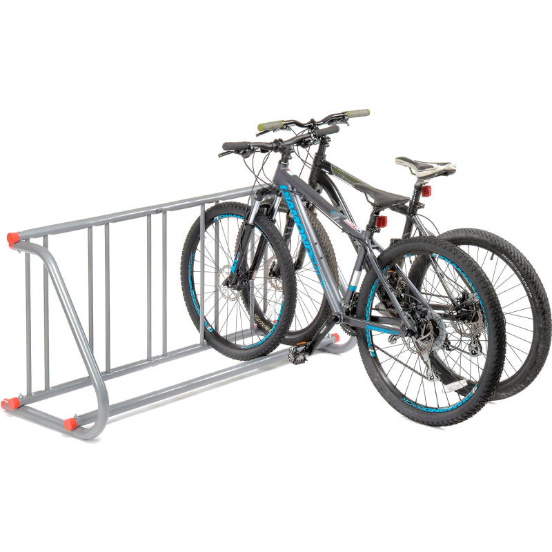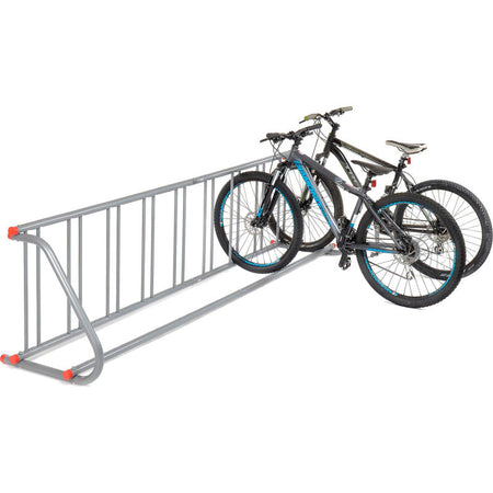 Support à Vélo simple face en acier de 1-5/8" pour le cadre et de 3/4" pour les grilles. Dimension de 26-1/2 PO (67,31 cm) x 111-5/8 PO (283,53 cm) x 31-3/16 PO (79,22 cm). Support à Vélo simple face. Les grilles sont rivetées. Accueille jusqu'à neuf bicyclettes d’un côté avec des pneus de vélo mesurant 2,72 pouces de large par 24,21 pouces de hauteur. Assemblage facile.