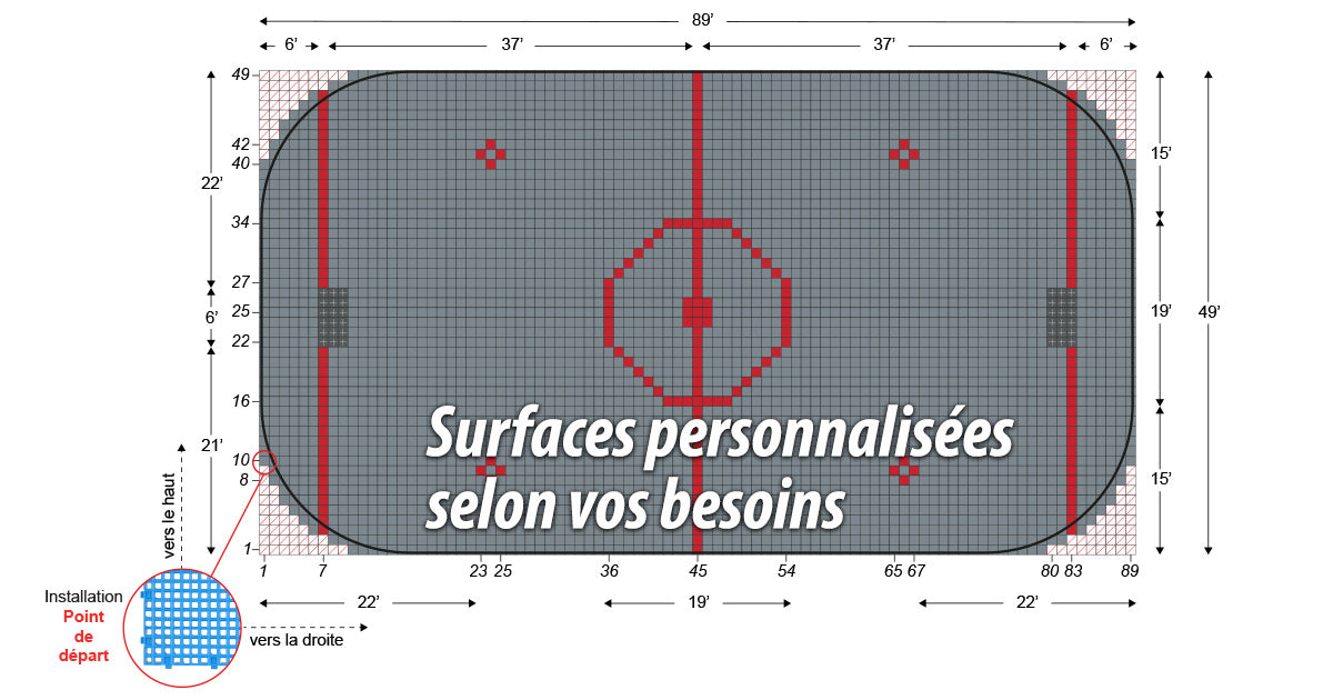 Nos systèmes de plancher modulaire multi-usage pour le sports permet d'être installé n'importe où sur un sol terre, asphalte, gazon, garage, etc. Il permet d'obtenir une surface propre, égale et solide pour la pratique de la majorité des sports tels que le Basketball, Volleyball, Tennis, Soccer, DEK Hockey et même des surfaces de jeux pour une garderie.