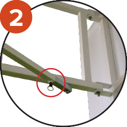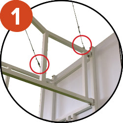 Points d’ancrage à l’extrémité des bras permettant de sécuriser la structure au mur (à l’aide de câbles). Voir photos 1