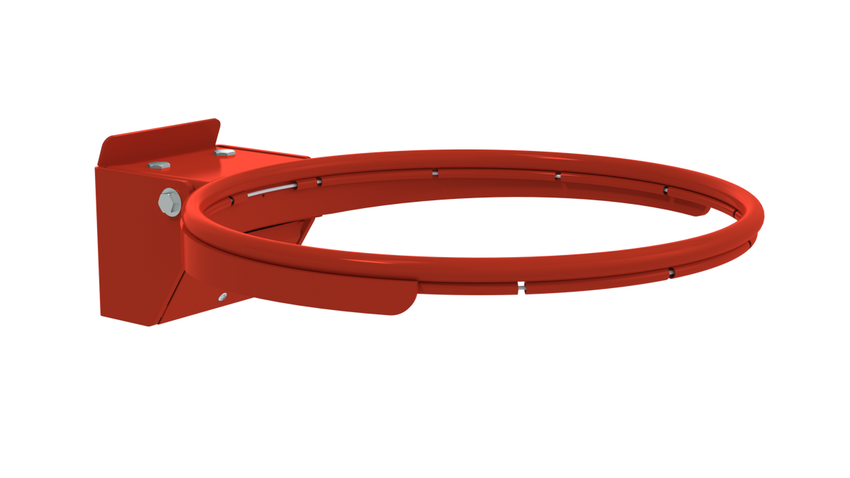 Anneau de basket-ball standard en acier massif, recouvert de peinture de poudre orange. Diamètre de 450 mm et un système de déclenchement à double ressort calibré à 105 kg, ce qui le rend idéal pour la haute compétition. La conception à double anneau sans crochet assure la sécurité lors des donks, et la plaque de montage mesure 150 mm x 142 mm avec un motif de trous conforme aux normes. Il est livré avec un tube de fixation pour filet de 3 mm et des attaches.