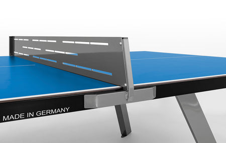 Table de ping pong d'extérieur Sponeta S 6-87 e. Ensemble de filet stationnaire en acier galvanisée (épaisseur 4 mm). Revêtement en poudre. Surface couleur bleue.
