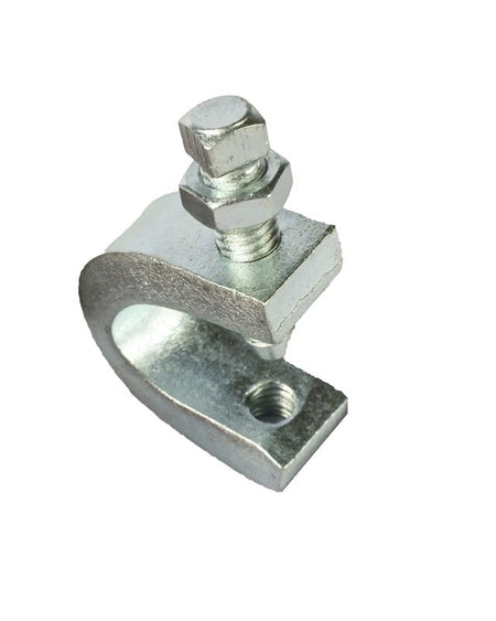 La pince de bord A3120-2 fixe la tige filetée à la poutre de toit ou au canal. Dimensions 0,375 pouces par 10 pi. Acier zinc.