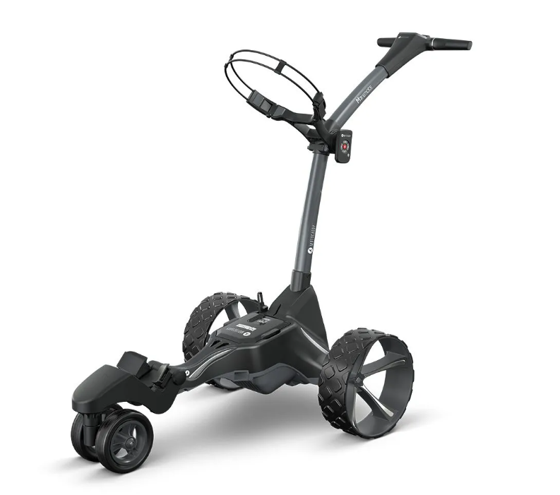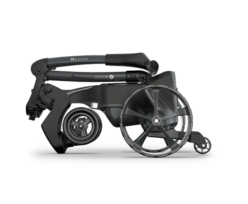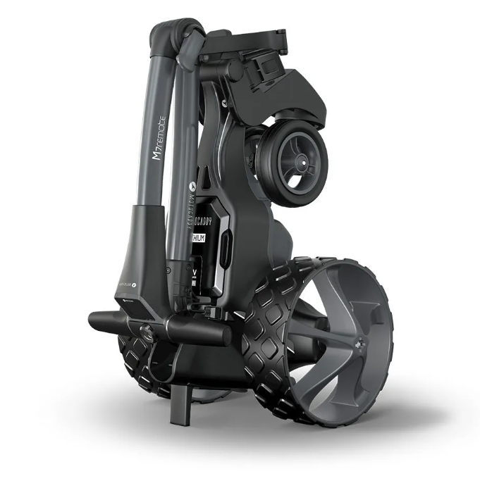 Le transporteur motorisé de sac de golf M7, l'outil ultime pour améliorer votre expérience sur le parcours. Son design moderne en couleur graphite, compact et pliable, permet un rangement facile et une mobilité optimale.