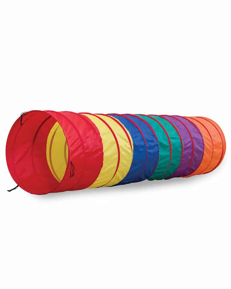 Gardez les enfants à s'entraîner à ramper ou à marcher comme des canards dans ce tunnel énorme en nylon de couleur arc-en-ciel. Longueur de 3.6m et diamètre de 90cm.